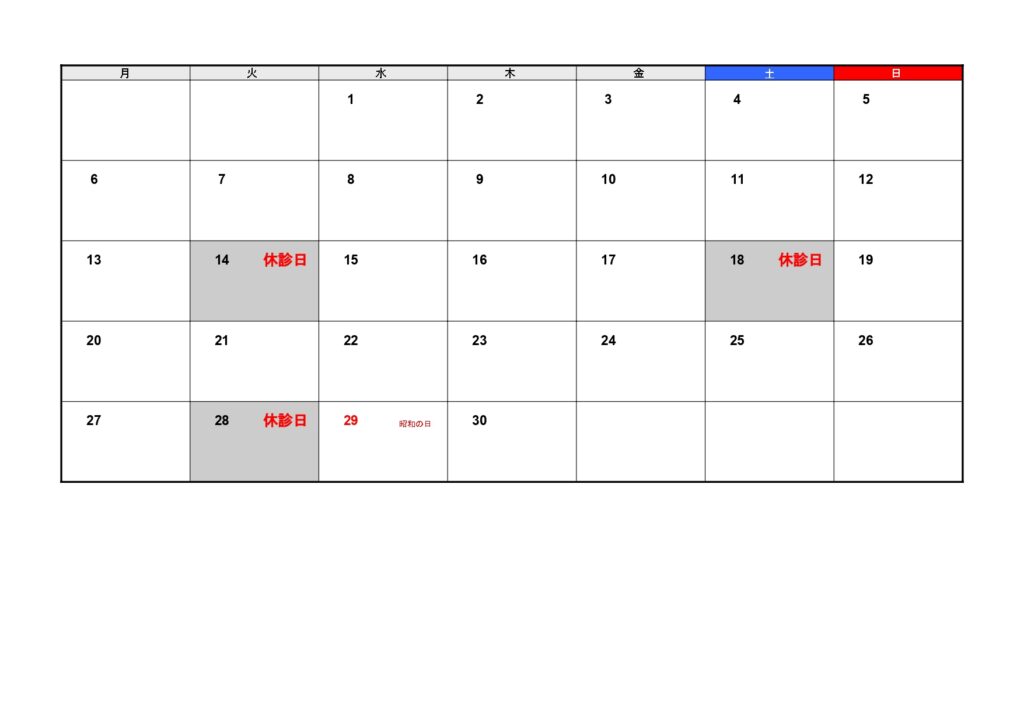 神奈川皮膚のできものと粉瘤クリニック 古林形成外科 横浜院より、2026年4月の診療日についてお知らせいたします。