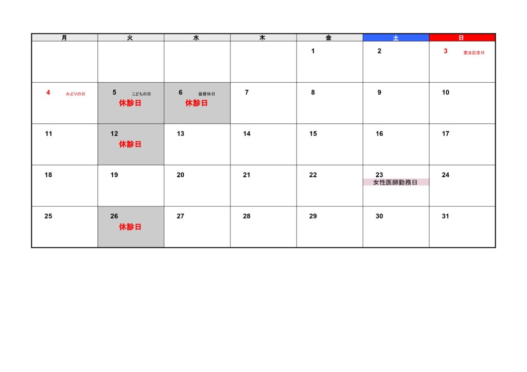 神奈川皮膚のできものと粉瘤クリニック 古林形成外科 横浜院より、2026年5月の診療日についてお知らせいたします。